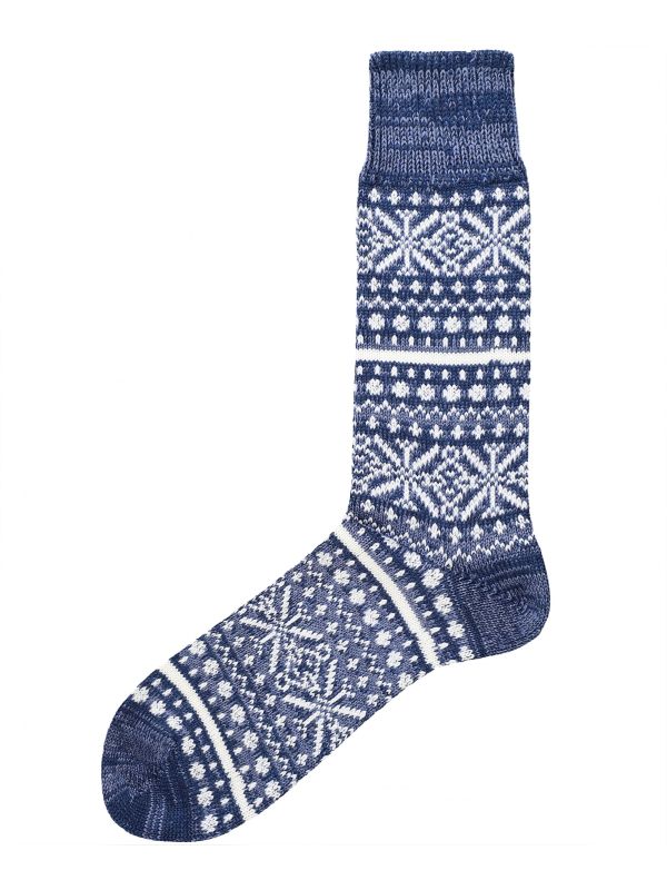 Introduce seasonal pattern into your daily essentials with the J. Blades Fair Isle socks. Lovingly knitted in a luxurious merino wool and cotton blend, the socks will ensure cosy day-long comfort. Featuring traditional ribbed ankle cuffs and hand linked toes, whilst the Fair Isle pattern makes for a charming aesthetic.
