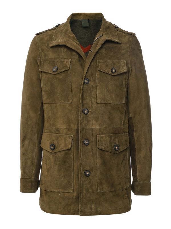 Exquisitely crafted in Italy by the finest leather specialists, the J. Blades Saharian jacket is set to add rugged style into your winter wardrobe. Showcasing signature field jacket detail, the suede jacket is packed with functionality including four pocket front and concealed zip storm guard fastening to keep the chills at bay. Complete with buttoned shoulder epaulettes and khaki green hue, the jacket exudes classic military inspiration.