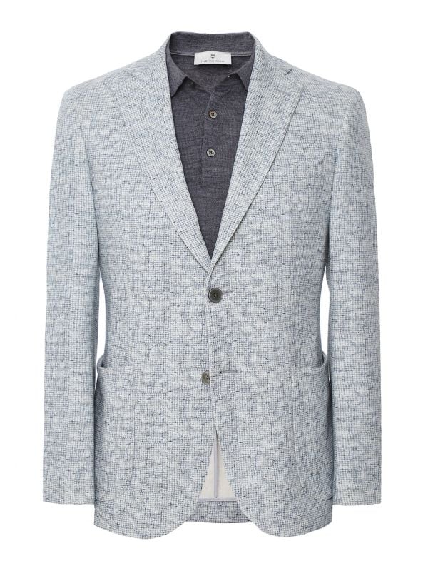 The J. Blades textured jacket is the perfect option for smart summertime events. Superbly tailored for an exceptional fit, the light grey jacket features notch lapels, two button fastening and stacked button cuffs, whilst the front patch pockets offer a more relaxed aesthetic. The J. Blades jacket has been designed with a textured woven finish making for a charming depth of character and tactile handle.