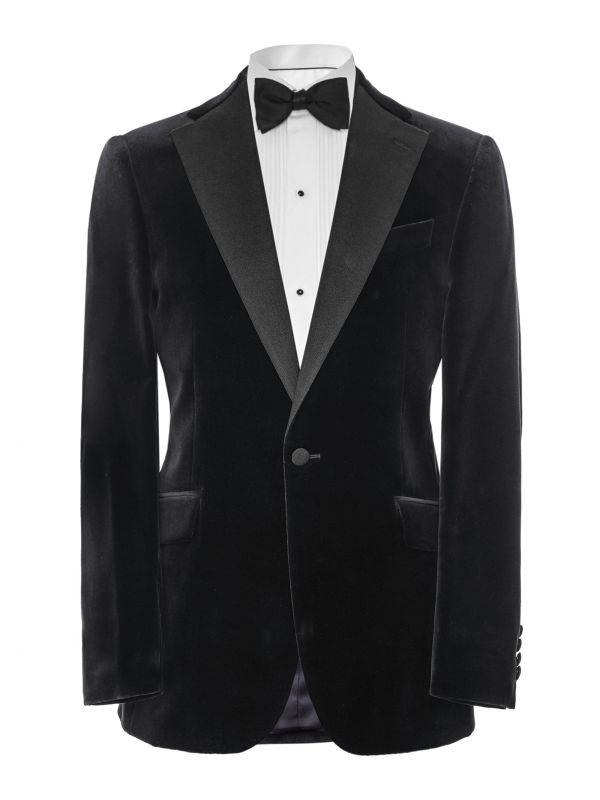 Showcase debonair style at your next event with the J. Blades dinner jacket. Expertly tailored in superior cotton velvet, the jacket offers a sumptuously soft handle and decadent aesthetic. Featuring contrast notch lapels, single button fastening and three pocket front, whilst the contrast is continued through the kissing buttons to the cuffs.