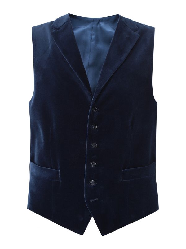 The J. Blades velvet vest is the perfect layering option for tailored winter looks. Exceptionally crafted to contour a masculine silhouette, the vest has been made in cotton with a velvet finish for a sumptuously soft handle and decadent aesthetic. Featuring a button-through fastening with notch lapels, front welt pockets and adjustable rear waist belt, whilst the deep navy hue makes the vest a versatile styling companion.