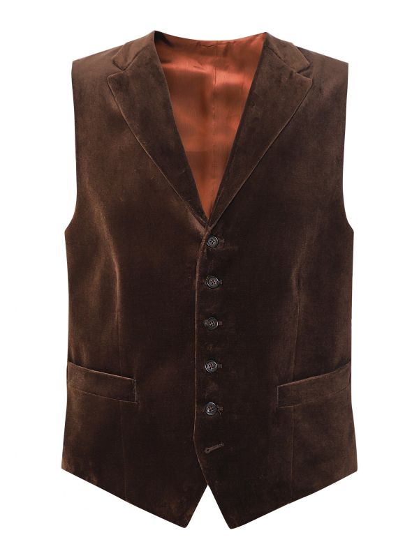 The J. Blades velvet vest will add a sophisticated touch to your tailored winter looks. Exceptionally crafted to contour a masculine silhouette, the vest has been made in cotton with a velvet finish for a sumptuously soft handle and decadent aesthetic. Featuring a button-through fastening with notch lapels, front welt pockets and adjustable rear waist belt, whilst the chocolate brown hue makes the vest a versatile styling companion.
