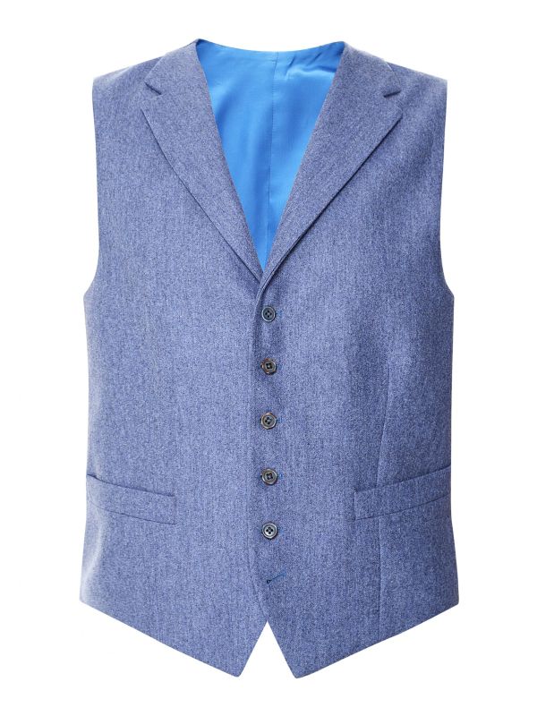 Add sophisticated style into your wardrobe with the J. Blades flannel vest. Exceptionally crafted to contour a masculine silhouette, the vest has been made in pure virgin wool with a flannel finish for a sumptuously soft handle. Featuring a button-through fastening with notch lapels, front welt pockets and adjustable rear waist belt, whilst the light blue hue makes for a fresh aesthetic.