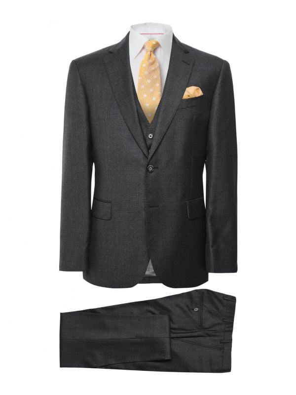As part of our in-house menswear label, the J. Blades Daniel suit is a superb piece of tailoring ideal for all formal occasions. Lovingly crafted in pure virgin wool with a slim fit, the three piece suit offers a sumptuously soft handle and clean-cut silhouette. Comprising of a single breasted jacket with two button fastening and v-neck waistcoat, whilst the matching trousers feature a zip fly, four pocket design and belt loops. The J. Blades suit has been designed in a handsome grey hue making it super versatile to match with shirting, ties and footwear.