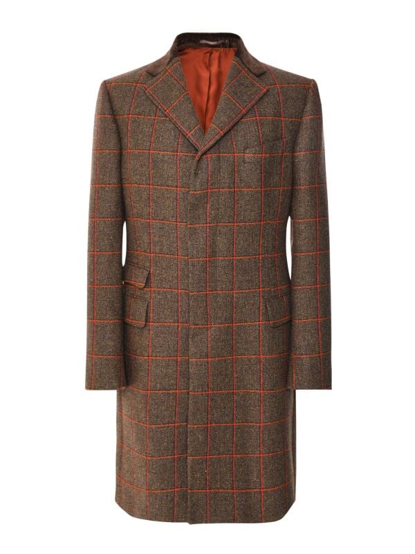 The J. Blades windowpane check coat has been exceptionally tailored to provide the wearer with an outerwear mainstay that will become a go-to year after year. Lovingly crafted in pure virgin wool with a fully lined interior, the overcoat will ensure essential warmth when the winter chills hit. Featuring a sleek concealed button fastening and functional pocketed front, whilst the notch lapels are complete with a velvet collar adding a touch of extra luxury.
