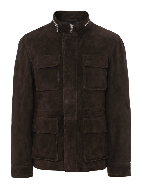 The Jack Leathers Haruto Suede Jacket brings a field-jacket sensibility in soft suede. It has a zip-through stand collar with exposed metal zip, a covered front zip with a snap placket and four flap pockets for secure storage. Panel topstitching and a pared-back silhouette add structure without excess. The metal hardware provides robust closure and the flap pockets sit neatly on the chest and hips. Layer over knits or shirts for transitional weather; the tactile suede finish and functional detailing make it a considered piece to incorporate into smart-casual outfits.