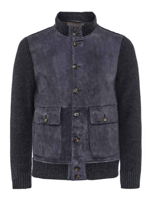 - Suede front panels and knitted back and sleeves
