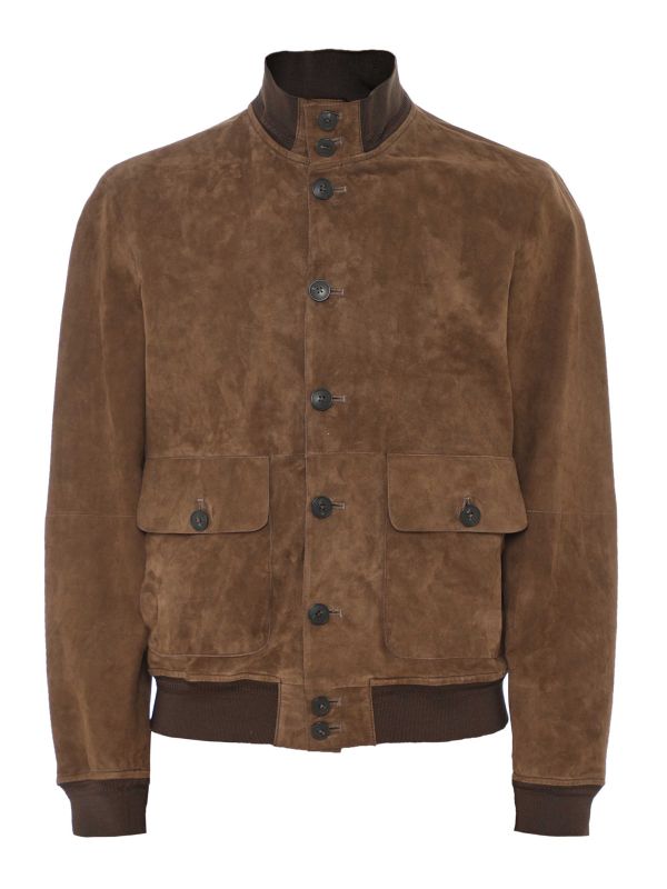 The Riverside Suede Jacket from Jack Leathers is a bomber-inspired jacket crafted in soft suede with a button-front fastening. It features a ribbed stand collar, cuffs and hem and twin flap pockets with button closures for practical storage. Fully lined for comfortable wear, the design is finished with tonal buttons and neat topstitching. Wear over knits or tailoring for versatile layering across seasons, with the brand’s emphasis on considered leather detailing evident throughout.