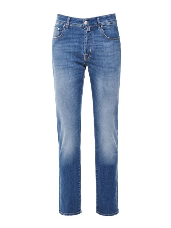 Upgrade your essential denim collection with the Jacob Cohen Bard jeans. Expertly tailored in Italy using the finest sourced denim, the jeans are cut to a slim fit with stretch offering a modern silhouette without compromising on comfort. Featuring a button fly, horsehide waistband tab, classic five pocket design and faded wash aesthetic, whilst all Jacob Cohen jeans come complete with a complimentary pocket square for signature appeal.