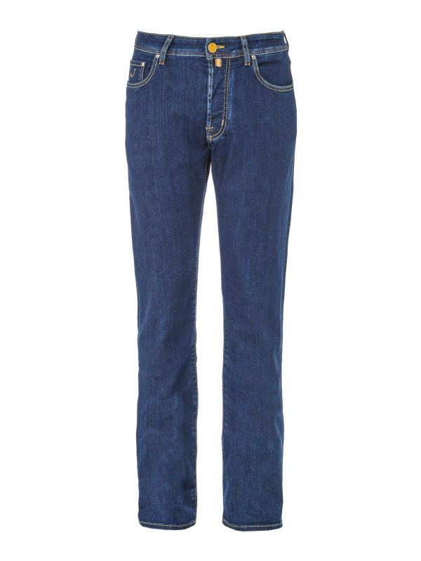 With a classic five-pocket layout and a logo embroidered coin pocket, these jeans offer both practicality and elegance. The branded calf hair waistband tab further elevates the aesthetic, while the complimentary pocket square adds a refined finishing touch. Infused with the signature Jacob Cohen perfumed fragrance, these jeans are not only a fashion statement but also an olfactory experience. In a slim fit with a mid-rise and a mid-wash blue hue, the Jacob Cohen blue Bard jeans exude timeless charm and versatility.