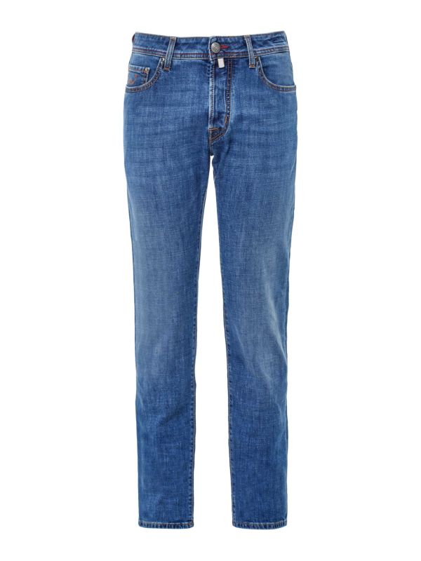 The Jacob Cohen Bard jeans offer a sophisticated take on casual denim, crafted from a high-quality cotton stretch fabric that ensures both comfort and a perfect fit. The light wash denim, with its subtle fading and whiskering, gives these jeans a worn-in, vintage-inspired appeal, making them ideal for everyday wear. Designed in a slim fit with a regular leg length, they offer a modern, tailored look that enhances the natural shape of the body.