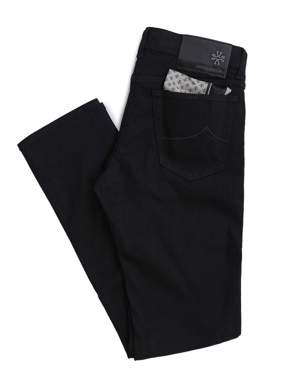 The Jacob Cohen BARD jeans are a modern essential for a sharp, casual look. Crafted from cotton stretch denim, they offer a slim fit that’s comfortable yet flattering. The classic five-pocket design is detailed with a button fly, belt loops, and branded metal hardware, while the leather waistband tab adds a subtle mark of craftsmanship. Made in Italy with exceptional attention to detail, each pair comes with a complimentary pocket square, giving you an effortless way to elevate your outfit. Perfect for everyday wear, these Jacob Cohen jeans combine style, comfort, and premium quality in one sleek package.