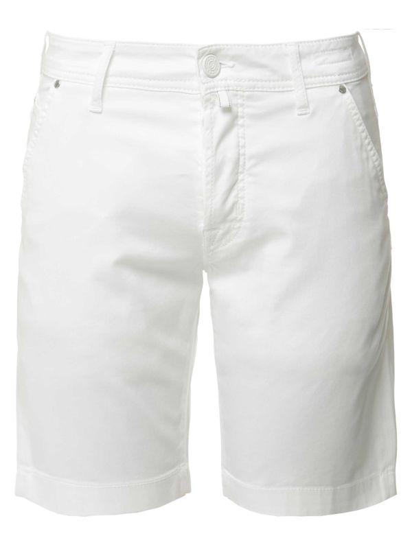 The Jacob Cohen Bermuda shorts deliver comfort and style with their cotton stretch fabric, ensuring flexibility and ease of movement. Crafted in twill woven material, they exude durability and a refined texture. Drawing inspiration from jeans styling, these shorts boast a classic five-pocket design, adding both functionality and a timeless aesthetic.