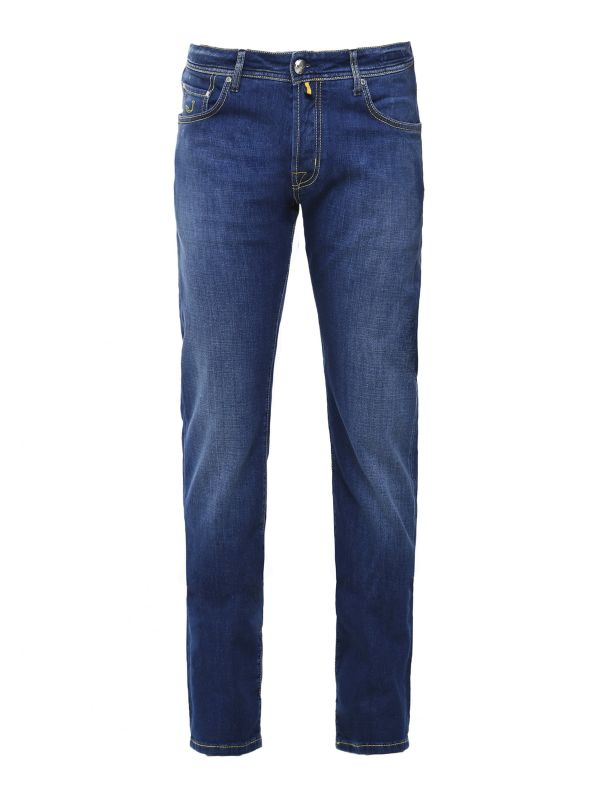 The Jacob Cohen comfort jeans are a relaxed and versatile option ideal for downtime. Expertly tailored in Italy using rare denim and cut to a stretch slim fit with low waist, the jeans offer a contemporary silhouette without compromising on comfort, with the indigo dyed mid wash hue lending a laid-back appearance. Featuring a button fly and five pocket design, whilst the pony hide waistband tab and complimentary pocket square offer signature Jacob Cohen touches.