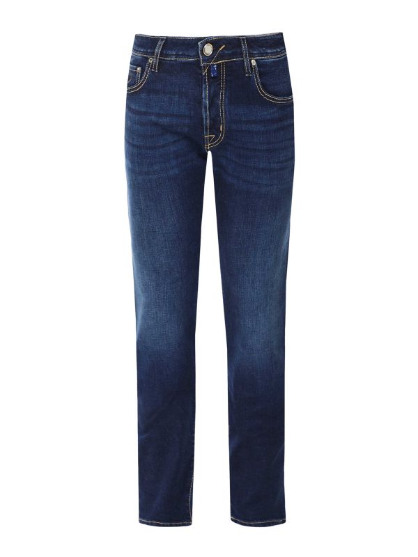 The Jacob Cohen Nick jeans are a refined choice for the discerning gentleman who values both style and comfort. Crafted in Italy from premium cotton with a hint of stretch, these jeans offer a slim fit and a low waist that contours the body without sacrificing ease of movement. The dark wash denim is artfully faded and whiskered, adding a touch of rugged sophistication to its classic appeal.