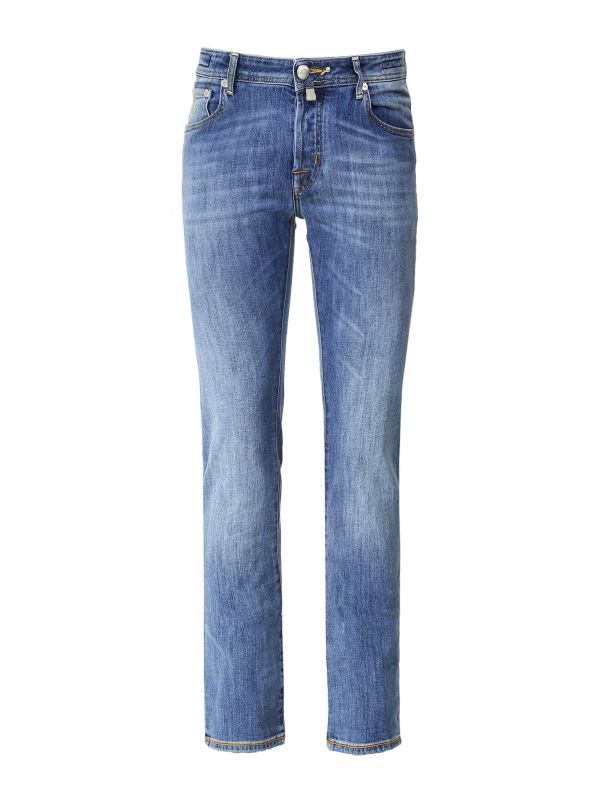 The Jacob Cohen comfort jeans are a luxe option ideal for everyday occasions. Cut to a slim fit with low waist and expertly hand tailored in Italy in a premium stretch cotton, the light wash jeans offer a contemporary silhouette and rugged faded finish. Featuring a button fly, five pocket design and branded waistband tab, whilst each pair of Jacob Cohen jeans comes complete with a complimentary patterned pocket square.