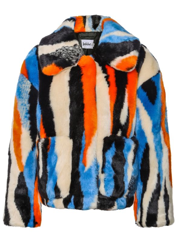 Make a statement through winter with the Jakke Traci faux fur jacket. This bold coat will instantly elevate any outfit with its multi-coloured stripes, boxy fit and exaggerated collar. The jacket is complete with dropped shoulders, front patch pockets and discreet snap buttons at the cuff so your can customise your look.