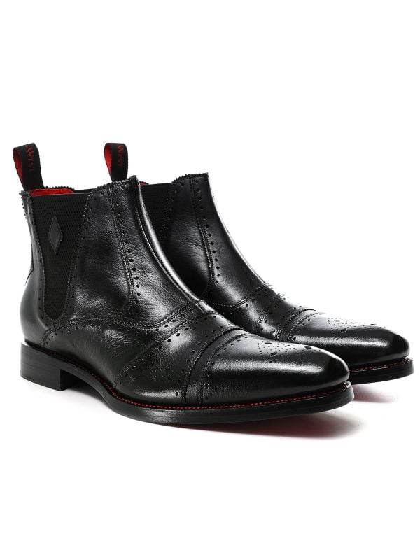 The Jeffery-West Dexter Point Chelsea boots are crafted with a sophisticated edge, featuring rich leather uppers that balance durability with style. Goodyear welted for lasting quality, these boots are a testament to premium craftsmanship. They sport a medallion cap toe, enhanced by striking diamond punch trims that add an understated yet unique character. Elasticated side gores provide easy wear, while a branded ankle pull loop offers both function and a nod to detail.