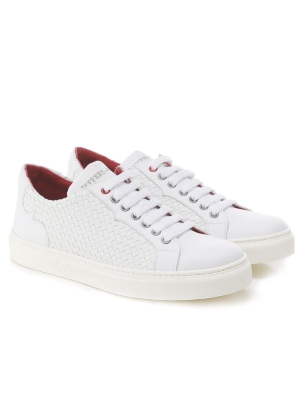 The Jeffery-West Apollo Sunrise trainers bring a fresh, urban edge to classic craftsmanship with their premium leather uppers and distinctive woven side panels that add a touch of texture. Designed with a modern lace-up style, these trainers stand out thanks to bold red contrast details and lining, giving them an eye-catching appeal.