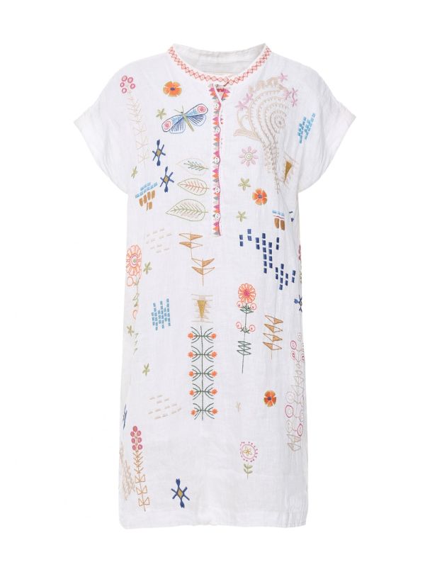 The Johnny Was Elektra dress is a must-have piece to pack for your upcoming vacation. Expertly crafted from pure linen, the dress has been cut to a super effortless loose fit with a mini length. Style yours with your favourite pair of sandals as it boasts short wide sleeves and a seasonal embroidered design.
