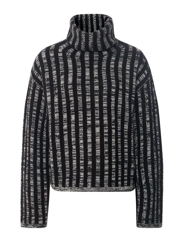 The high neck jumper by Joseph is made for a relaxed fit with roomy sleeves and an extra high neck. Made with softness in mind from a cashmere wool-blend, it has an eye-catching jacquard stripe throughout. As a mid-weight knit, it can be worn beneath coats and jackets while still revealing the distinctive collar.
