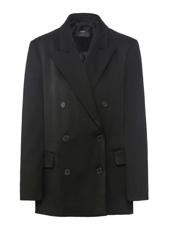 The Joseph Chapone jacket is a double-breasted blazer-style jacket designed for a relaxed fit. Made from a viscose blend, the jacket has a woven texture and is complete with a button closure, four-button cuffs and welt flap pockets. Tailored with light shoulder padding, it is a statement piece for the modern woman.