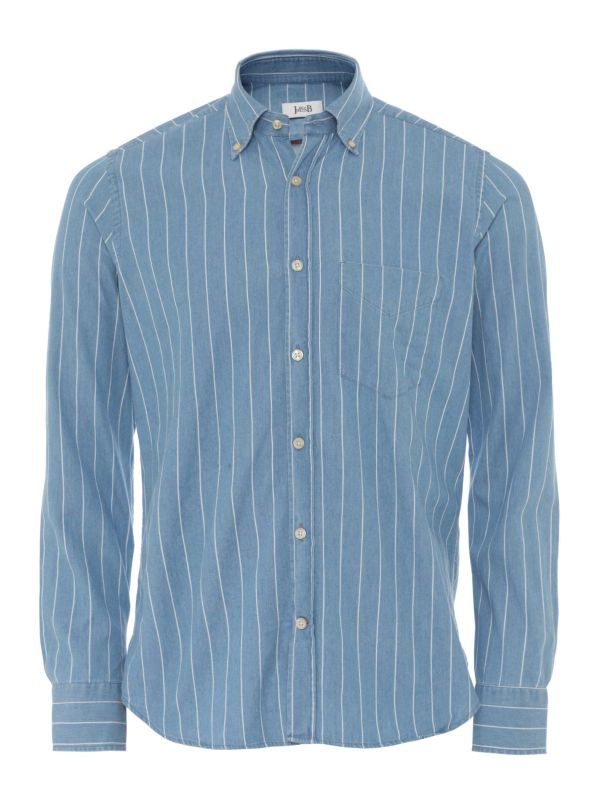 The Jules B Striped Button-Down Shirt is cut from soft cotton and finished with a button-down collar and a neat chest pocket. A button-through front and buttoned cuffs ensure straightforward wear, while vertical stripe detailing lends a clean, elongated look. The versatile cut works equally well with tailored Pants or chinos for day-to-evening outfits. The overall construction focuses on practical, everyday detailing that complements casual wardrobes.