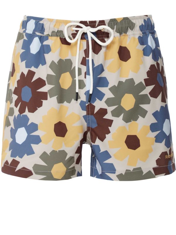 The Knowledge Cotton Stretch AOP Swim Shorts balance a playful all-over print with considered swimwear details. Designed in a stretch polyester-elastane fabric, they have an elasticated waistband with an adjustable drawstring, side pockets and a practical mesh lining for support. A small embroidered logo sits at the hem. The short cut and flexible construction make these a comfortable option for beach or pool days, while the graphic pattern gives them personality. Pair with tees or towels for relaxed summer looks.