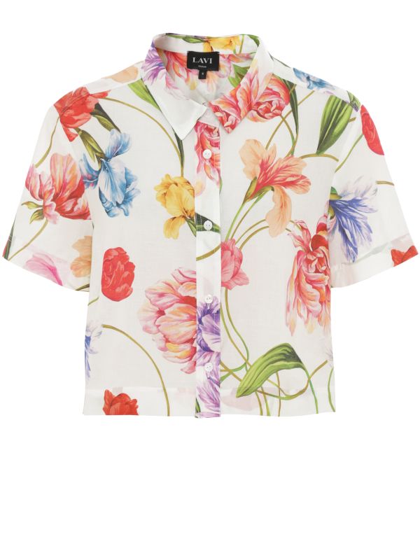 The Lavi Eucalipto Floral Shirt is a short-sleeved, button-front style with a crisp shirt collar and cropped hem. Cut from 100% cotton, it features an all-over floral pattern and a relaxed boxy shape that layers easily over tees or under blazers. Finished with neat button fastening and a straight hem, this lightweight piece dresses up tailored Pants or sits casually with denim for versatile warm-weather looks. Tuck it into tailored bottoms for a smarter finish or leave it untucked for relaxed weekend styling.