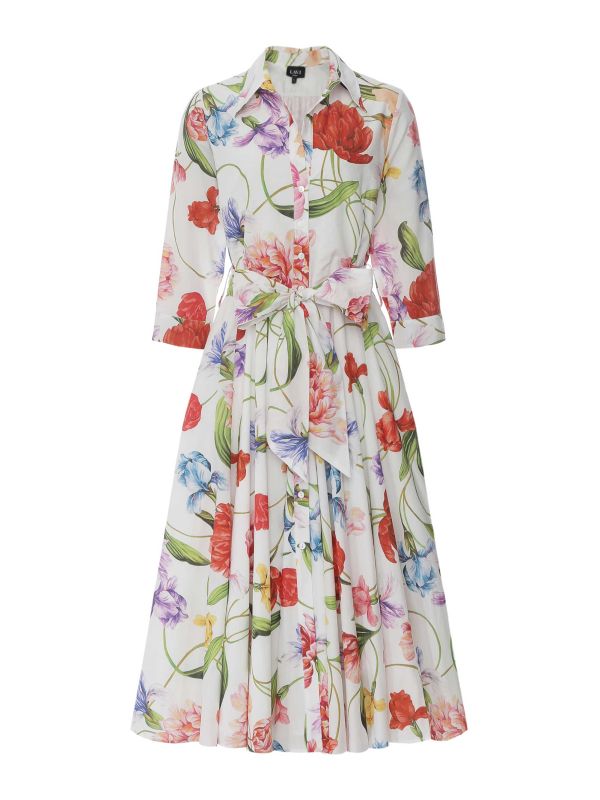 Lavi presents the Spritz Shirt Midi Dress, a shirt-style midi with a button-through front, self-tie waist and three-quarter sleeves. The full pleated skirt offers movement and volume while the tailored collar and cuffed sleeves add structure. A removable sash defines the waist and a button placket ensures easy wear. Cut for a longline silhouette, it balances a sculpted bodice with a flowing skirt for polished occasion dressing or day-to-evening looks. Finished with tonal buttons, the style layers under lightweight outerwear for transitional looks.
