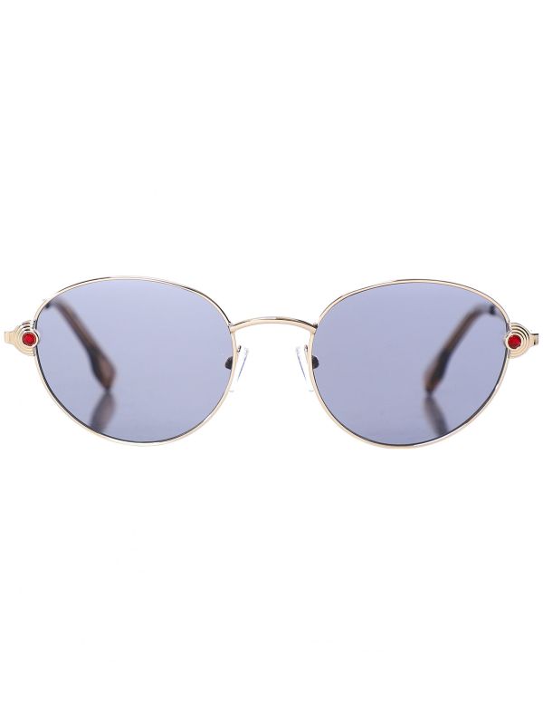 - Gold-tone round metal frames