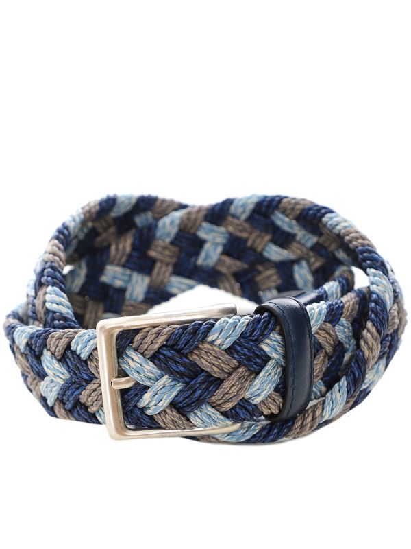 Its brushed nickel-tone buckle adds a touch of elegance, complementing the belt's overall aesthetic. The two-tone design adds visual interest, making it a versatile accessory suitable for various outfits and occasions. With a width of 35mm, it strikes the perfect balance between style and comfort. The elasticated and hand-braided construction ensures a secure and adjustable fit, making it a practical yet fashionable addition to any wardrobe.