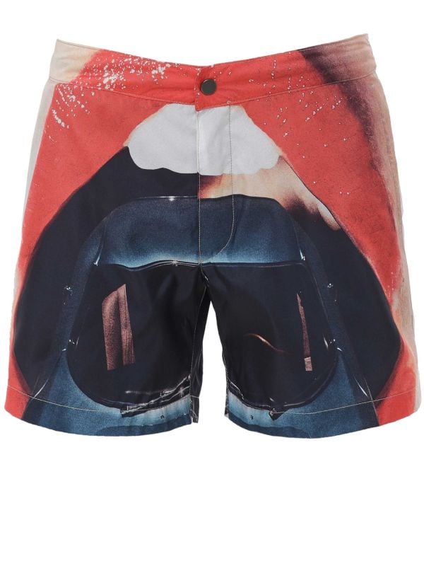 The Limitato Abstract Swim Shorts are a bold take on menswear swimwear, printed all over with a graphic motif and cut for a short, practical fit. They feature an elasticated waistband with a front fly and snap-button closure for a secure, comfortable fit, plus a zipped pocket to keep essentials safe while on the move. A small Center-front split at the hem adds freedom of movement. Ideal for poolside and seaside days, these swim shorts pair well with relaxed summer layering.