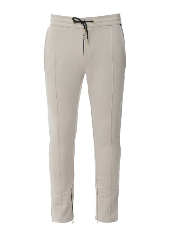 The Limitato Cream Track Pants are a tapered jogger with neat Center seaming for a structured silhouette. Designed with an elasticated waistband and drawcord for an adjustable fit, it features side pockets, a zipped rear pocket and ankle zips for easy styling. Gold-tone zipper hardware provides a subtle contrast, while the streamlined cut ensures a contemporary look. The Pants pair well with layered knits or a casual shirt for a smart-casual finish.