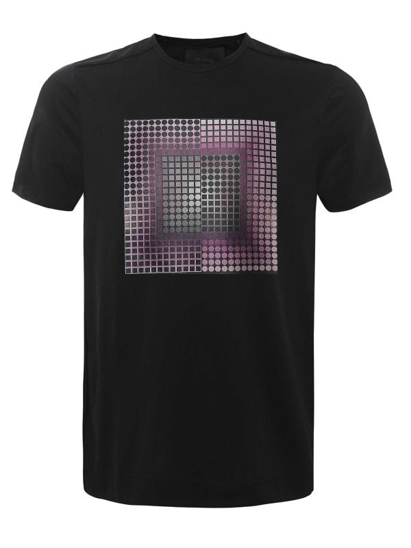 The Lila Graphic T-Shirt is a contemporary offering from Limitato, defined by a striking central graphic that blends dot and grid motifs with subtle tonal layering. Cut with a classic crew neck and short sleeves, it presents clean lines suited to easy layering. The chest print adds visual depth and pairs well with denim or tailored Pants for a modern casual look. Comfortable for everyday wear, this tee brings considered designer detailing to relaxed outfits without overwhelming the silhouette.