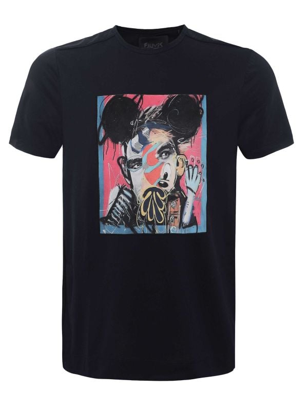 Introduce contemporary edge to everyday dressing with a graphic short-sleeve tee crafted by Limitato. This crew-neck style features a large rectangular printed panel to the chest, carefully topstitched for a defined look. Short sleeves and a straight hem keep the silhouette clean, while neat neckline ribbing ensures comfortable wear. Wear it with jeans or layered under a jacket for casual weekend styling. The t-shirt is a direct-expression piece that puts artwork at the Center of the outfit, ideal for men seeking a bold, wearable print.
