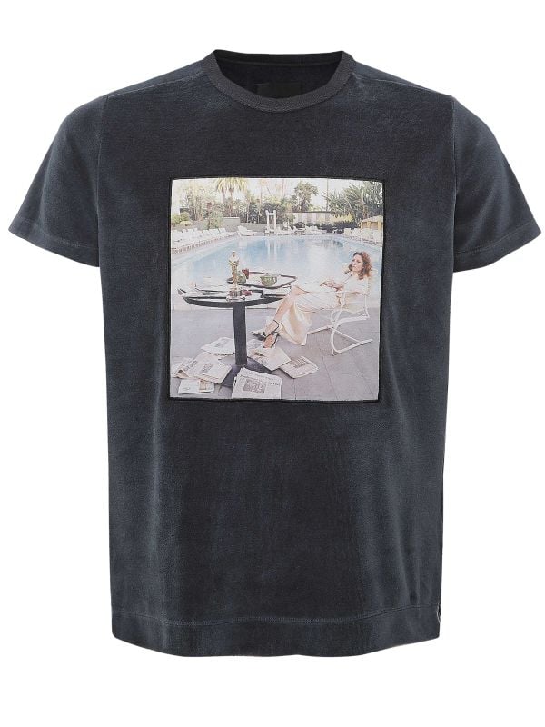 The Pool Newspaper Terry T-Shirt from Limitato pairs a photographic poolside panel with a textured terry body for a tactile take on a graphic tee. Designed with a crew neck, short sleeves and a straight hem, it offers a clean silhouette that layers simply under overshirts or wears well with denim. The image panel is finished with a narrow piped border for subtle definition. A wearable piece that balances visual storytelling and everyday comfort, it updates casual looks with a contemporary, tactile touch.