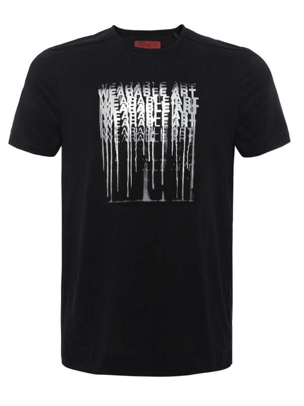 An expressive graphic tee from Limitato, the Wearable Art Graphic T-Shirt features a repeated 'WEARABLE' motif rendered with a paint-drip effect across the chest. The layered print adds texture and visual movement to a pared-back silhouette, making it an easy choice for contemporary street styling. Pair with tailored Pants or relaxed denim for versatile looks. Finished with a clean hem and durable print, this piece highlights artist-led detailing for everyday wear.