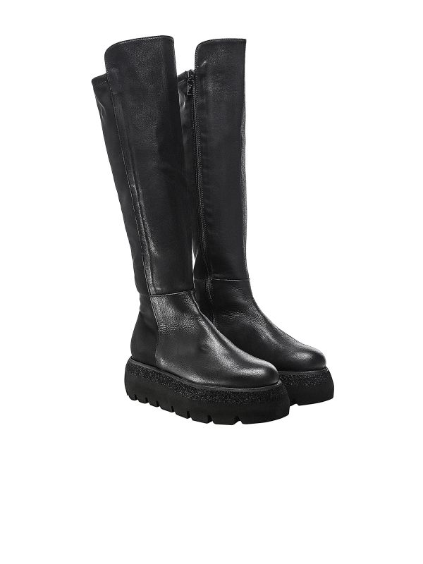 Lend an ultra modern touch to your footwear with the Lofina knee boots. Designed with a smooth leather front and soft suede back, the boots showcase a super luxe aesthetic. Featuring a full side zip fastening allowing for an easy fit, whilst the chunky platform sole adds a leg lengthening boost.