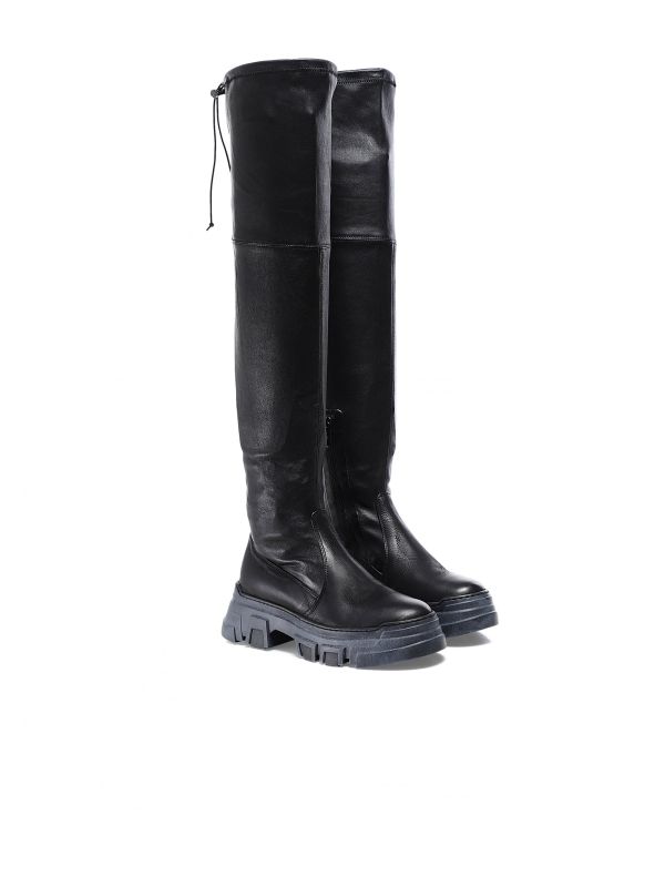The Lofina over the knee boots are an elegant option for everyday wear. Expertly crafted in Italy using premium leather, these beautiful boots are designed with both style and comfort in mind. The boots features a side zip detail, drawstring cuff, soft leather lining and a chunky rubber sole for a contemporary finish.