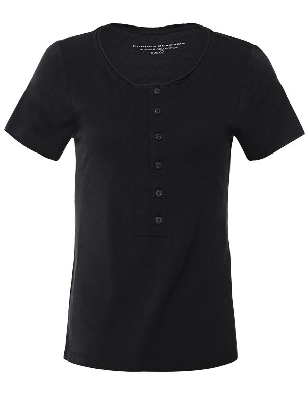 The Lurdes Bergada button front t-shirt is an essential addition to your off-duty wardrobe. Made form a soft stretch cotton blend fabric, this laid-back tee is easy to team with your favourite pants or skirts. It features a round neckline, short sleeves and a button down detail to the front, with side vents for a distinctive finishing touch.