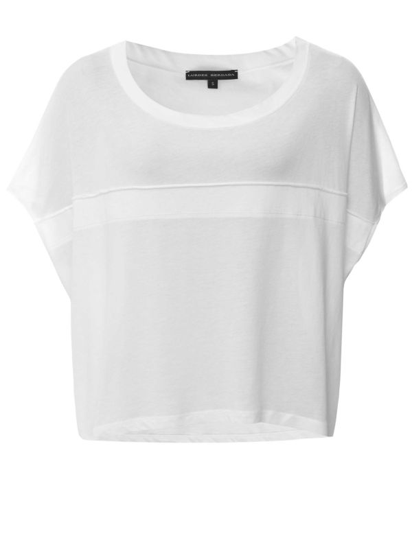 Give your white tee collection an edge with the Lurdes Bergada Cropped Splash T-Shirt. Made from modal and cotton, this t-shirt is soft to the touch and features a rounded neckline, a cropped cut and stitch detailing across the front. Style it with everything from jeans to smart trousers for a variety of looks this season.