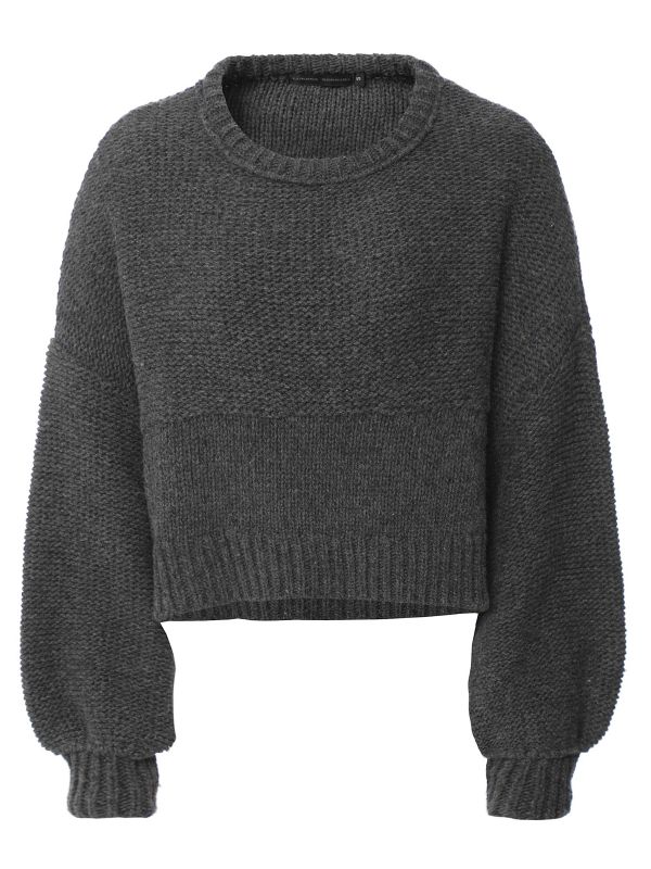 The Cropped Wool-Blend Sweater is a boxy, cropped knit from Lurdes Bergada. Crafted in a mixed-Fiber composition, it pairs textured stitches with a ribbed neckline, cuffs and hem for a tactile finish. The relaxed silhouette and long, gently ballooned sleeves create volume while remaining easy to layer over shirts or dresses. Practical details include a round neck and a mid-crop length that works with high-waisted bottoms. Layer under coats or pair with relaxed Pants.