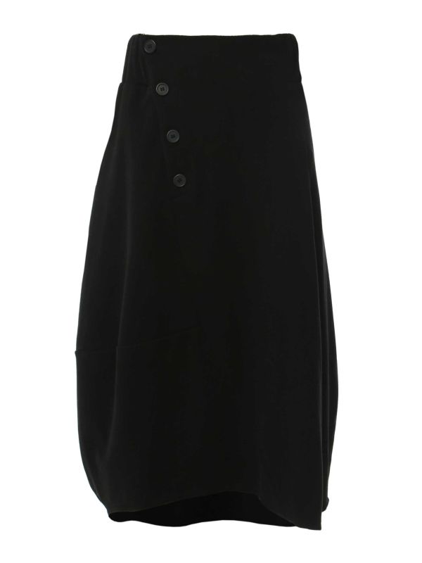 Slip into cosy comfort with this fleece midi skirt from Lurdes Bergada. Designed with a comfortable elasticated waistband, this balloon-shaped skirt features an asymmetrical button fastening to one side, panel details and an asymmetric hemline. Tuck in your favourite shirt and style it with a pair of ankle or knee-high boots.