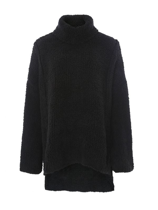 Step into AW/21 in extreme comfort with the Lurdes Bergada Fluffy Sweater. Lovingly crafted in a wool blend, the oversized boxy sweater features a high-low hem, dropped shoulders, and slits at the side. Emphasize yours by pairing it with slim fit pants and chunky boots.