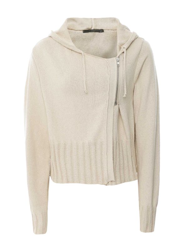 Discover the Lurdes Bergada hooded knit zip cardigan, a relaxed throw-on piece perfect for casual days. Crafted from a cotton blend, this cardigan stands out with its diagonal, half-zip closure, part-open front and asymmetrical ribbed hemline. It has a hood attached with tie details, long sleeves with ribbed endings and a cropped cut. Style this Lurdes Bergada cardigan over a tank top or on its own to emphasise the cut-out detail at the front.
