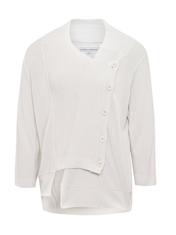 Get a stylish everyday look with the Lurdes Bergada knitted jacket. This essential cardigan is a lightweight piece for everyday layering and is perfect for teaming with casual pants or skirts. This laid-back knit has an asymmetric button fastening, ribbed collar, cropped sleeves and exposed seams, with an asymmetric hem and flattering fitted silhouette.