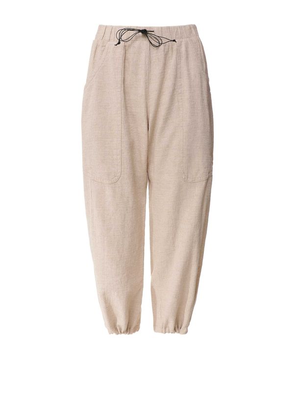 The Lurdes Bergada drawstring pants are perfect for slouchy style. Crafted with a light and airy linen and cotton blend, this piece features an elasticated waistband with cord-locked drawstrings at the waist and hem for versatile cinching. Pair this piece with a classic white tee for a timeless summer look.