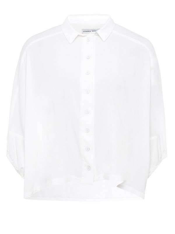 Update your everyday wardrobe this season with the Lurdes Bergada oversized shirt. Crafted in comfortable stretch rayon, this button down shirt features a pointed collar, 3/4 sleeves and a draped hem. Its oversized silhouette makes it an effortless off-duty piece to team with casual pants and sandals.