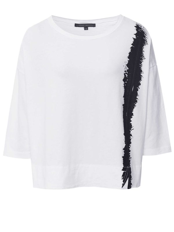 Lightweight and soft, the Lurdes Bergada Printed Stripe T-Shirt is your go-to for everyday styling. Cut from 100% cotton, this Lurdes Bergada t-shirt has a rounded neckline, 3/4 length sleeves, a cropped boxy shape and a contrasting black printed stripe detail to one side. Perfect for throwing on with your favourite jeans or trousers.